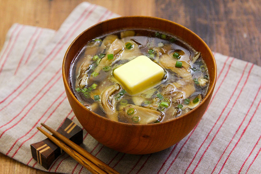 - 小鍋にごま油を引いて強めの中火で熱し、雪国まいたけ極を入れて焼き目がつくまで焼いたら水、和風だしの素を加えて火を強め、煮立ったら中火で5分煮て味噌を溶く
